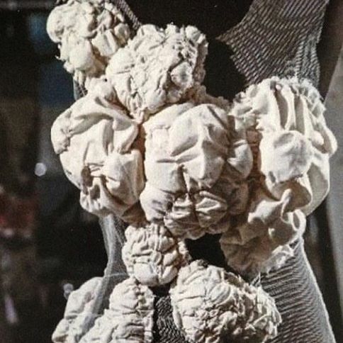 In addition, I examined the idea of using yellow thread and wadding to resemble the form of the gold pebbles when handsewn collectively onto the simple white mesh bodice to help visualise as the piece as 3D and make the garment stand out when walking down the runway or capturing on a picture as well.